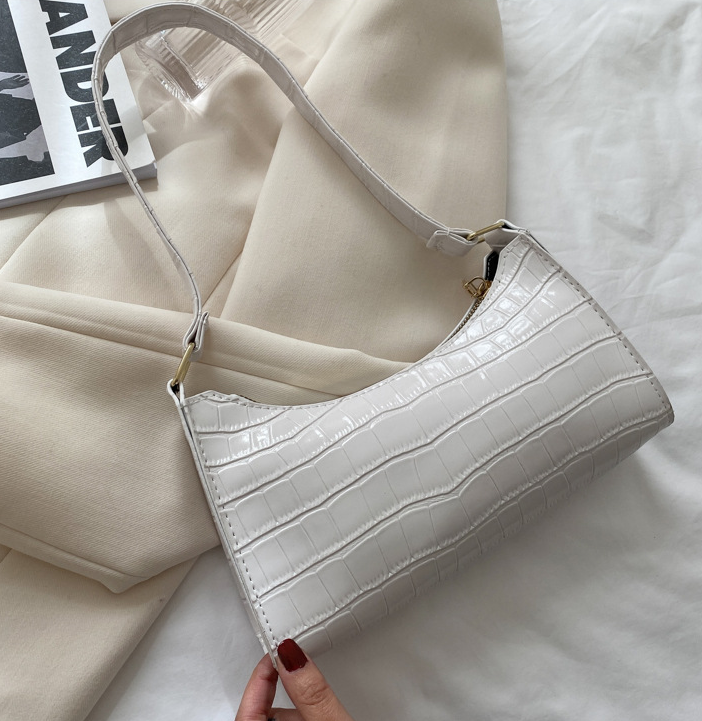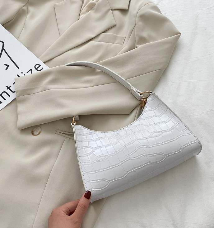 Minimalistisk och modern handväska med tillräckligt med utrymme för alla dina dagliga nödvändigheter som är gjord för att hålla. Tyg med textur, stängning med dragkedja och guldfärgade metalldetaljer.